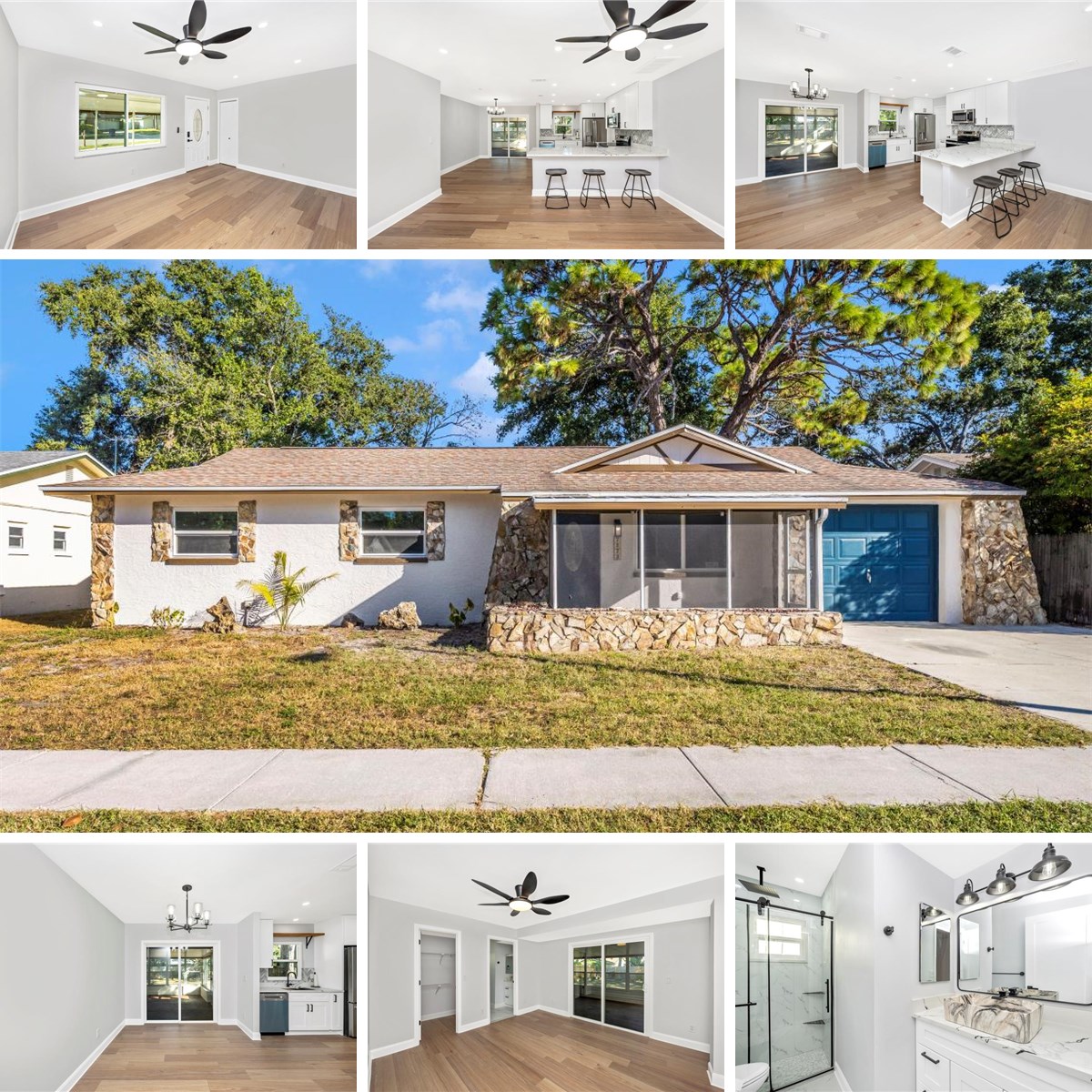 Welcome home to this beautifully remodeled 3-bedroom, 2-bath block home where craftsmanship and comfort come together in perfect balance. Every detail has been thoughtfully reimagined to elevate your everyday living, from the open floor plan to the curated finishes that flow seamlessly throughout. From the moment you step inside, you'll notice the refined details - luxury vinyl plank flooring, onyx hardware accents, solid-core doors, and fresh paint inside and out. The kitchen is a true showstopper featuring new shaker-style cabinets, sleek quartz countertops, all-new LG stainless steel appliances, and a Moet touchless faucet that blends innovation with elegance. The primary suite feels like a private retreat with a stunning spa-inspired bathroom. The custom shower features four distinct water experiences a soothing rain shower, four invigorating body jets, and additional precision streams - creating a daily experience of comfort and indulgence. Both bathrooms showcase quartz countertops, beautiful tilework, and stylish vessel sinks that complete the polished look. Expand your living space with the 444 sq ft enclosed sunroom, complete with its own remote controlled mini split for year-round comfort and LED lighting to set the mood for any occasion. The screened front lanai is perfect for morning coffee or quiet evenings, while the large, fully fenced backyard offers endless opportunities, from entertaining to adding a future pool, garden, or play area. With a one-car garage and storage space, new hurricane-impact windows, new tankless water heater, new 3-ton A/C, 5 1/4" baseboards and countless high-end finishes, this home is truly turn-key and built to impress. Every inch of this home has been upgraded with care, blending style, comfort, and quality into one exceptional living experience. All that's left to do is move in and fall in love.